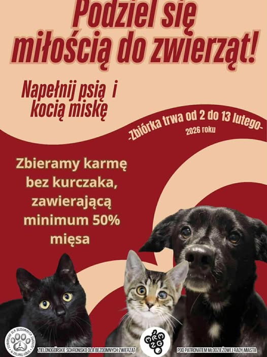 „Napełnij Psią i Kocią Miskę” – liczymy na Wasze wielkie serca! Możesz wspomóc akcję – prosimy o karmę dla psów i kotów (zbiórka przy stanowisku szkolnego wolontariatu, parter szkoły, obok sali nr 4) oraz datki finansowe, zbierane w trakcie zajęć lekcyjnych.